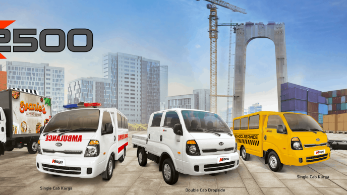 The Kia K2500 is the perfect vehicle to show you care in times of need. It can be used as a vehicle to deliver groceries and relief goods, utilized to ferry medical personnel and frontliners, and even serve as an ambulance.  And with its available 4-wheel drive, it can tackle rough terrain with ease. Also, customers can get it in the following configurations: Kargo- a utilitarian version of the Karga less the air conditioning and seats, Cargo Van, Dropside pickup- in single and double cab, or a Cab and Chassis. Each one is competitively priced for its segment.