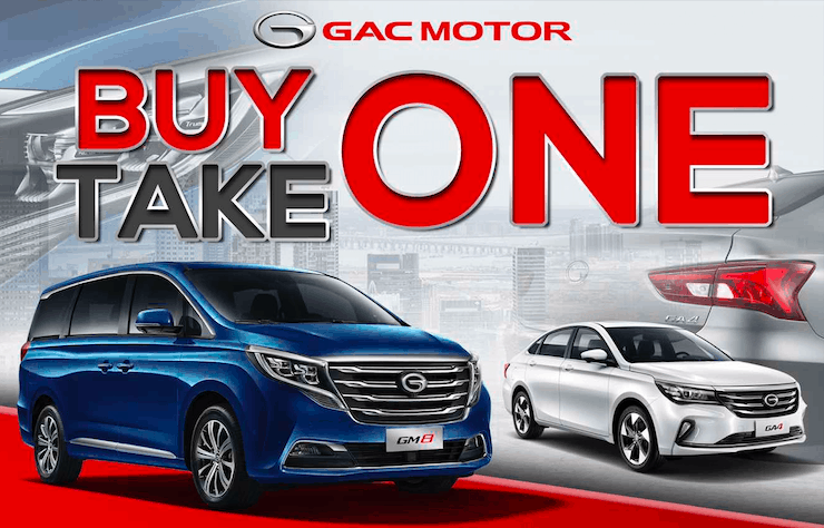 Avail of GAC Motor’s ultimate buy one take one promo until July 26. Bring home a GA4 sedan for every purchase of GM8 2.0L Turbo luxury MPV for PHP 2,980,000.