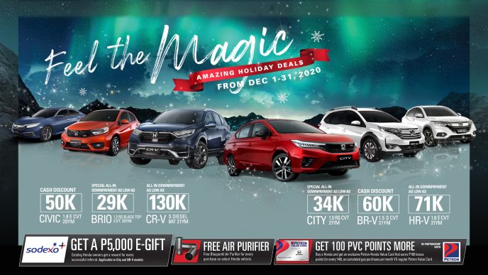 Honda Cars Philippines, Inc. (HCPI), Honda’s automobile business unit in the Philippines announces its Christmas promotion entitled “Feel the Magic this Holiday Season”. The promo features different cash discounts, exciting deals and special offerings from December 1 to 31, 2020.