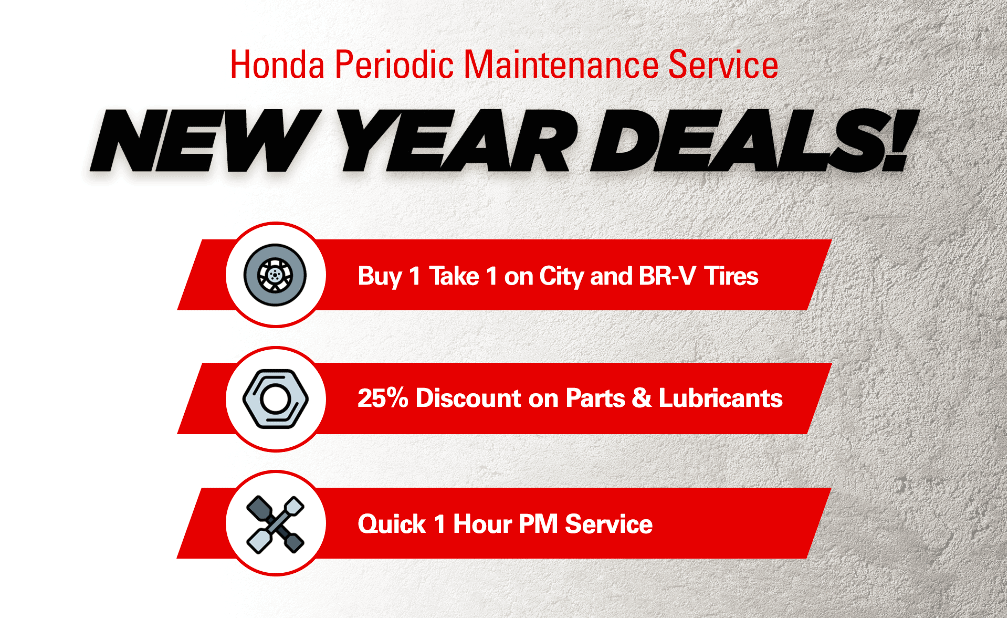 Honda Cars Philippines, Inc. (HCPI) Honda’s automobile business unit in the Philippines, has announced its “Honda PM Service New Year Deals” promo, which features different discounts and deals offered until March 31, 2021 at select Honda Cars dealerships and service centers nationwide.