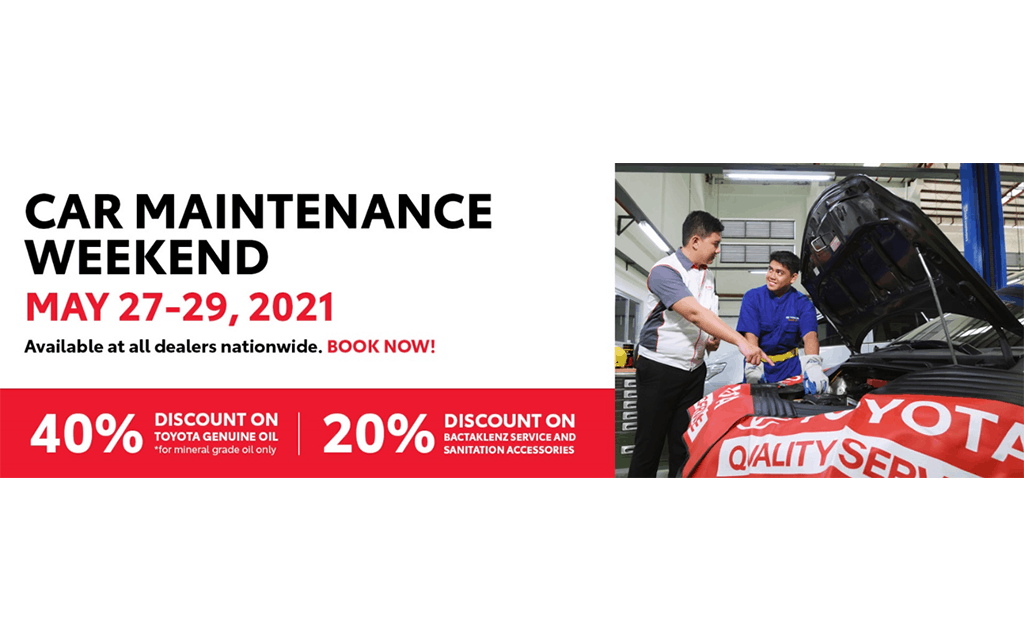 Toyota owners are in for a treat this May 27 to 29, 2021 as Toyota Motor Philippines (TMP) announces its Car Maintenance Weekend in all Toyota dealers and service centers nationwide.