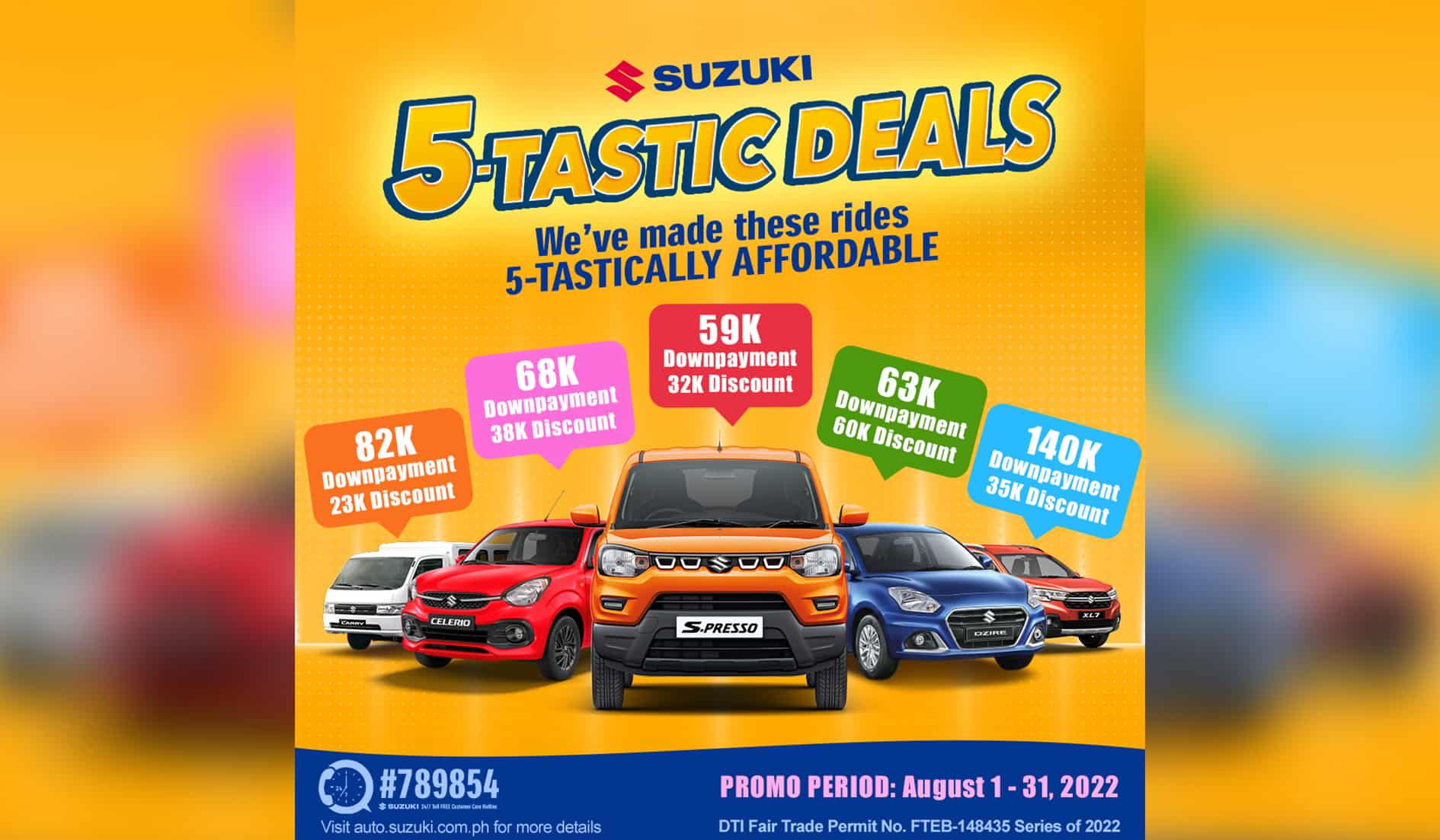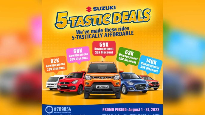 Promo period is from August 1-31, 2022 and is applicable to all Suzuki auto dealers nationwide.