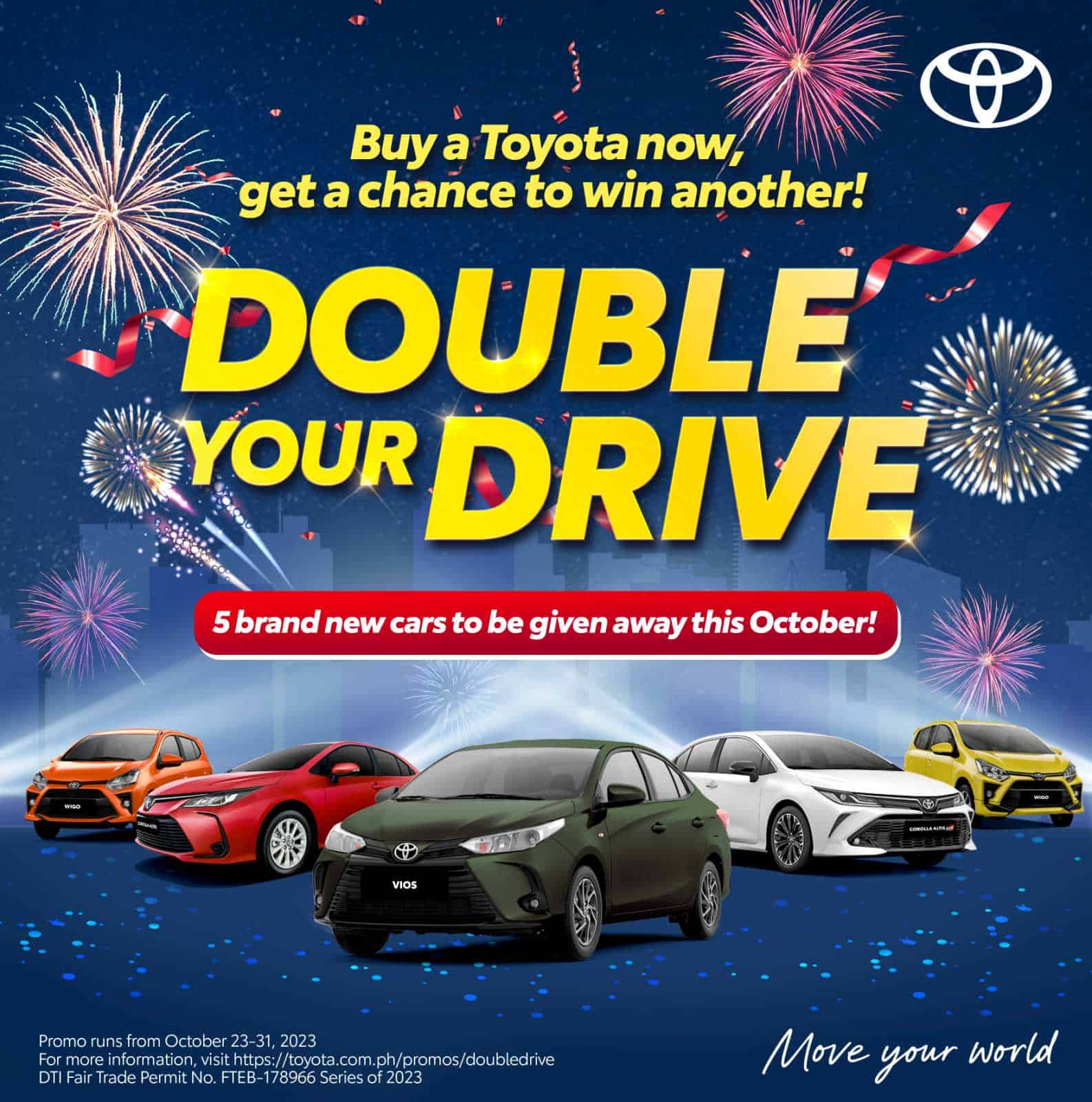 Don’t miss the chance to double your drive. Visit toyota.com.ph/promos/doubledrive to know more about the Double Your Drive promo and how you can get twice the happiness in mobility.