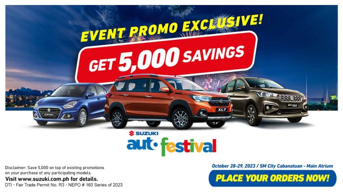 It’s Suzuki time again but this time it’s in Nueva Ecija as the country’s pioneer compact car distributor brings its fun-filled and good-vibes inducing Suzuki Auto Festival at the Main Atrium of SM City Cabanatuan on October 28 and 29, 2023.