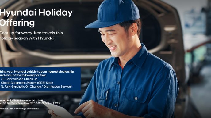 Hyundai Motor Philippines Inc. (HMPH) is ensuring that its new and existing customers will be able to gear up and embark on worry-free travels for the holidays. Until December 31, 2023, all Hyundai owners are entitled to a free 23-point car check-up and Global Diagnostic System (GDS) scan. These are performed by Hyundai-certified technicians who employ a thorough inspection of the vehicle body as well as mechanical and electrical systems. Potential hazards on a maintenance and safety point of view can then be detected, to which service advisors objectively evaluate and recommend counter measures.
