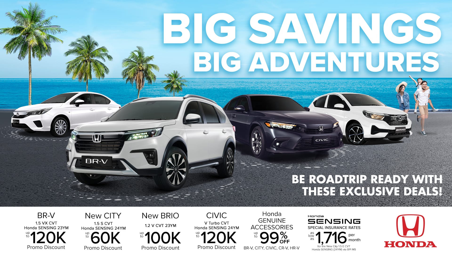 Hit the road with a flashy new Honda and make your summer days as memorable as you can with Honda Cars Philippines, Inc (HCPI) this May 2024! This is your last chance to take a dip into a pool of discounts from the Big Savings, Big Adventures promo, where markdowns for the BR-V VX and Civic V go as high as PHP 120,000 off this month. Offers are only available until May 31, 2024.