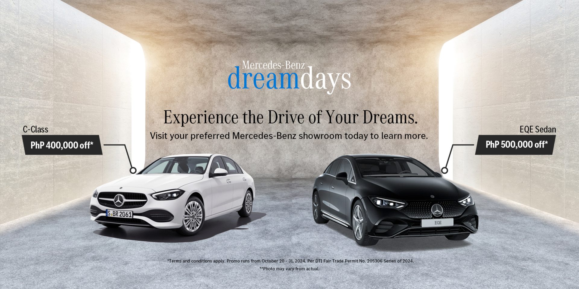 Mercedes-Benz Philippines is proud to announce the Mercedes-Benz Dream Days, a unique opportunity for discerning customers to experience the pinnacle of automotive excellence. For a limited time, select Mercedes-Benz models will be offered with exclusive cash discounts, allowing customers to step into a world of luxury, innovation, and superior performance. This exceptional campaign will run across all Mercedes-Benz dealerships in Greenhills, Bonifacio Global City, Alabang, and Cebu until December 31, 2024 only.