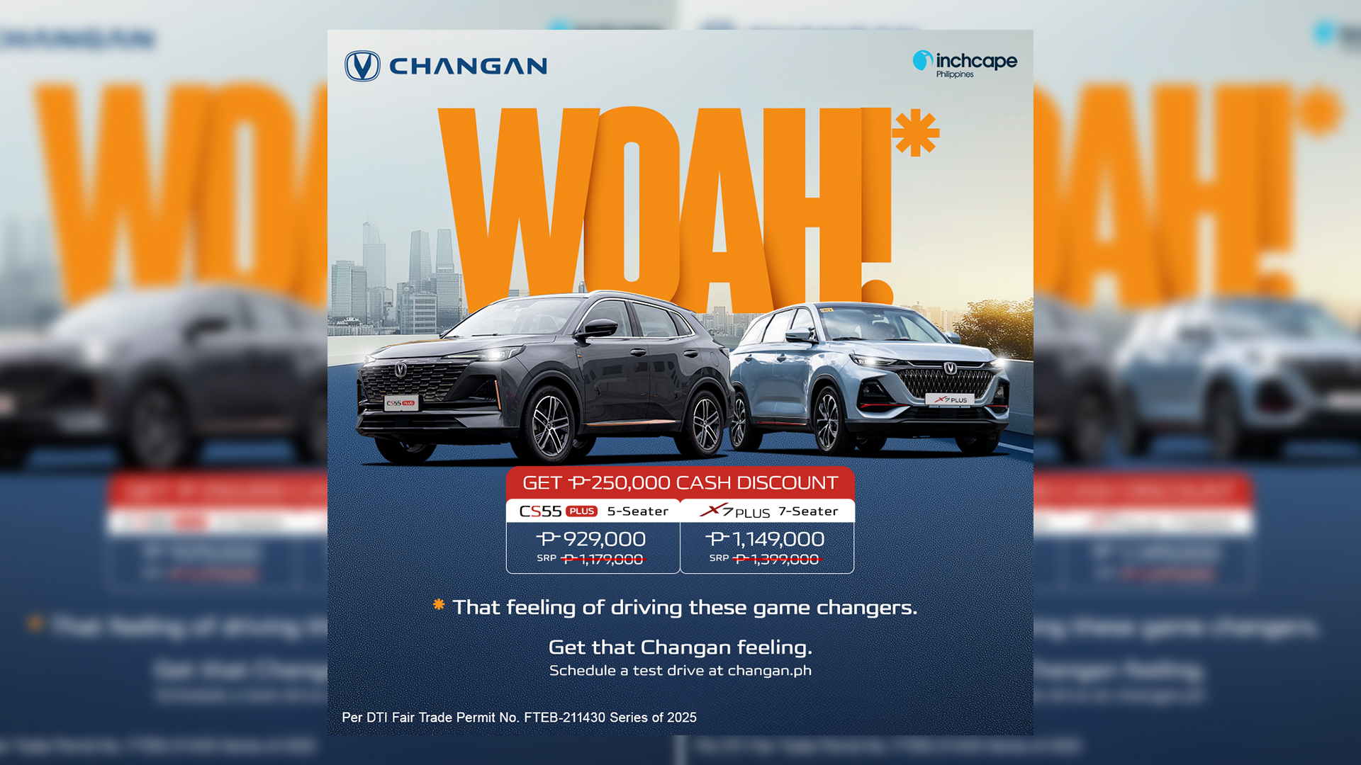 Inchcape Philippines, the exclusive distributor of Changan in the country, invites Filipino drivers to experience the ultimate blend of innovation, comfort, and performance with the Changan X7 Plus and CS55 Plus. This 2025, Changan Philippines is making it easier than ever to #GetThatChanganFeeling with exclusive cash discounts and unbeatable value.
