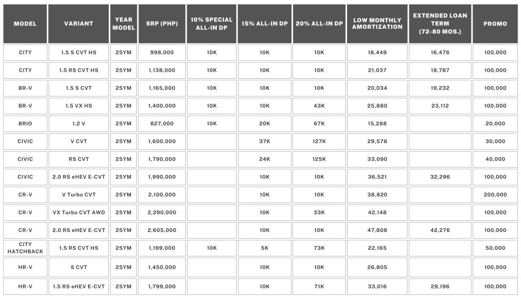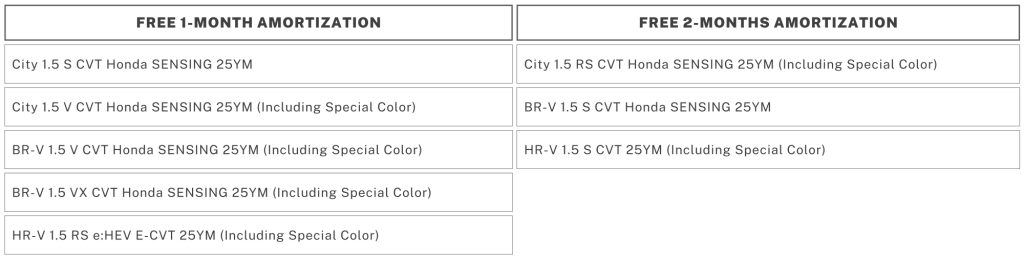 Lastly, HCPI is introducing a brand-new option for its customers, the Drive Today, Pay Next Year program. From November 8, 2025 to December 31, 2025, customers can avail up to two (2) months of free amortization through participating bank partners BPI and RCBC. This is also inclusive of the all-in package* and only applicable through 15% or 20% all-in low cash-out financing scheme at over terms of five (5) years or 60 months.