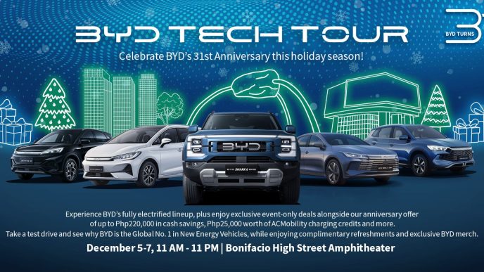 To make your holidays even brighter, BYD Cars Philippines is offering its limited Anniversary Deals. Get up to Php 220,000 worth of savings, PHP 25,000 ACMobility charging credits and avail of BYD’s low downpayment offers on select vehicles until December 31, 2025. These offers will be available at the BYD Tech Tour in the Bonifacio Highstreet Amphitheater from December 5 to 7, 2025. Test drive your preferred vehicles between 11 AM to 11 PM for that perfect opportunity to experience the joy, innovation, and adventure that come with every BYD drive.