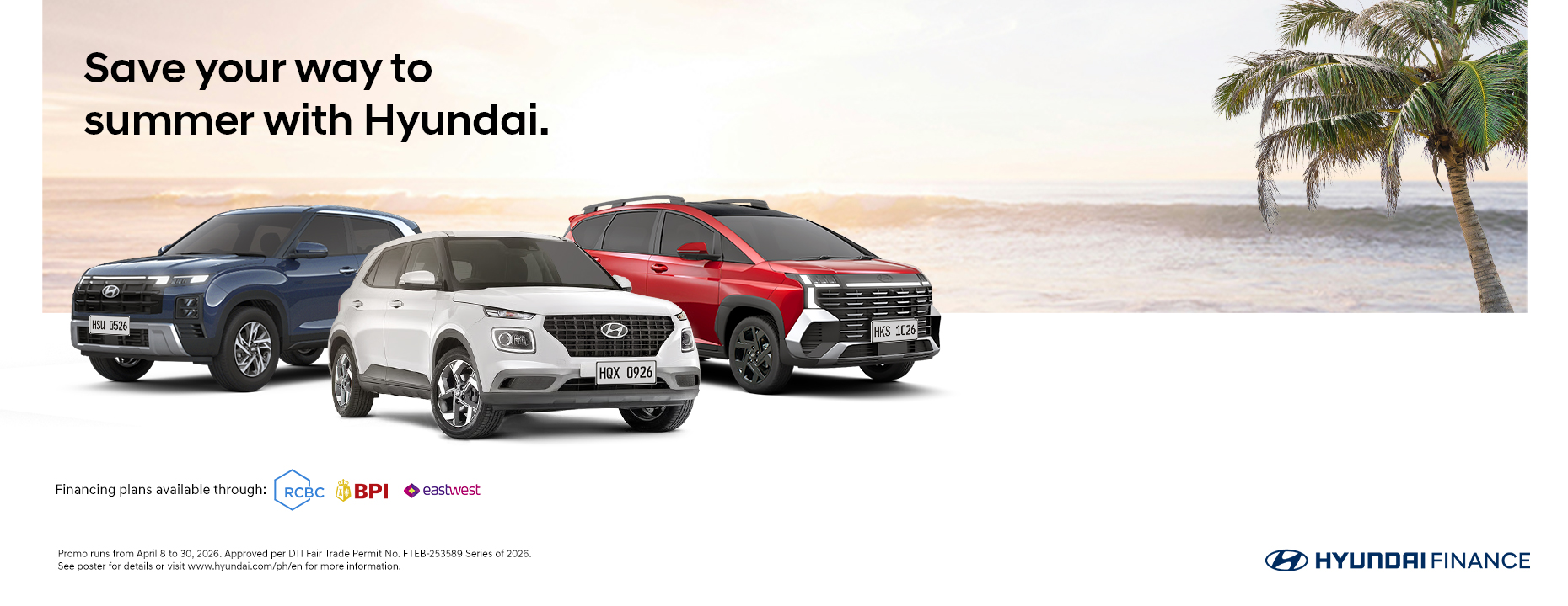 All offers are valid until April 30, 2026, at all Hyundai authorized dealerships nationwide, and are subject to bank approval and final terms and conditions. To learn more, visit https://www.hyundai.com/ph/en/build-a-car/promotion/sales-promo. Stay updated with Hyundai through @HyundaiMotorPhilippines on Facebook and Instagram.