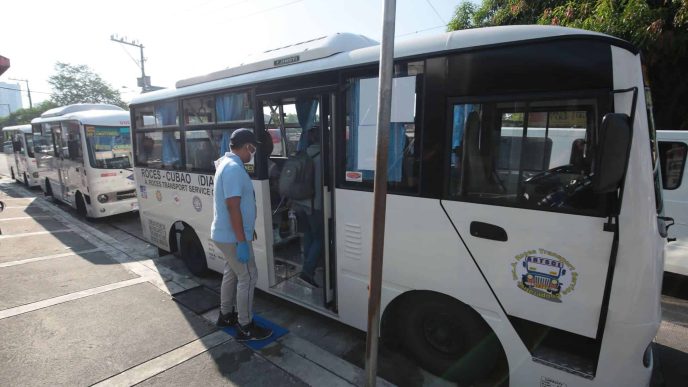 In Manila, 30 modern jeeps of the Pandacan-Leon Guinto route have returned to service today. Passengers are seated one seat apart and are using tap cards to pay the fare. Each card costs P120, pre-loaded with P50.