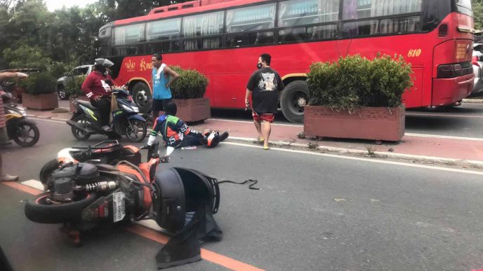 An aftermath of a motorcycle accident was captured by a motorist on the northbound lane of Buendia Flyover along Roxas Boulevard on Wednesday morning.