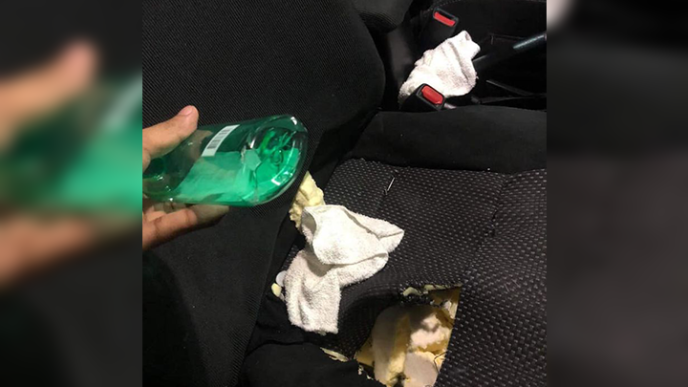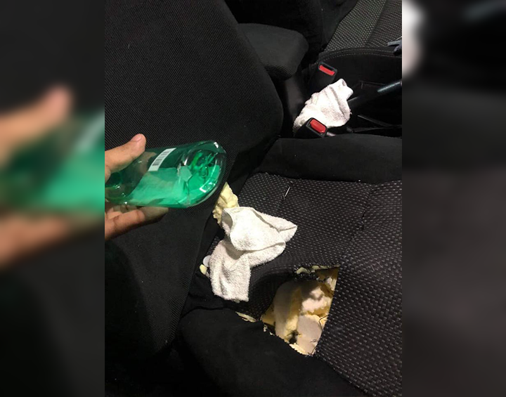 “Huwag po tayo magiiwan ng alcohol or softdrinks sa kote. Dahil sa sobrang init, sumabog yung alcohol sa loob ng kotse ng bebe ko. Basag ang salamin, butas ang upuan damaged din yung bubong,” Canlas wrote. “Magingat po at baka mangyari rin ito sainyo, lalo na at marami talagang nagiiwan ng alcohol sa kotse ngayong pandemic.”