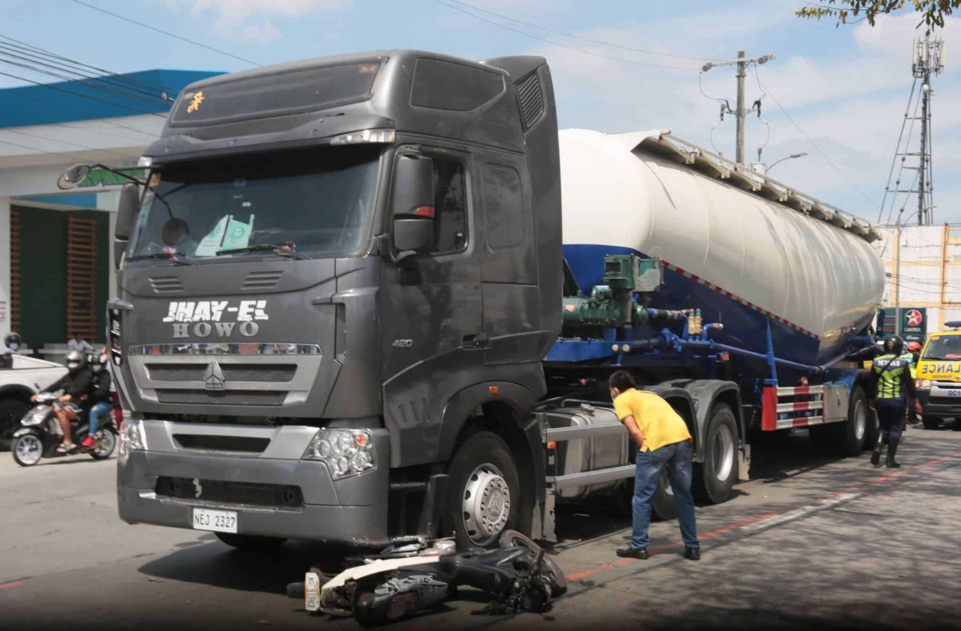 According to the initial report, the still unidentified motorist was riding her motorcycle with her daughter when a truck hit them along Mindanao Avenue.