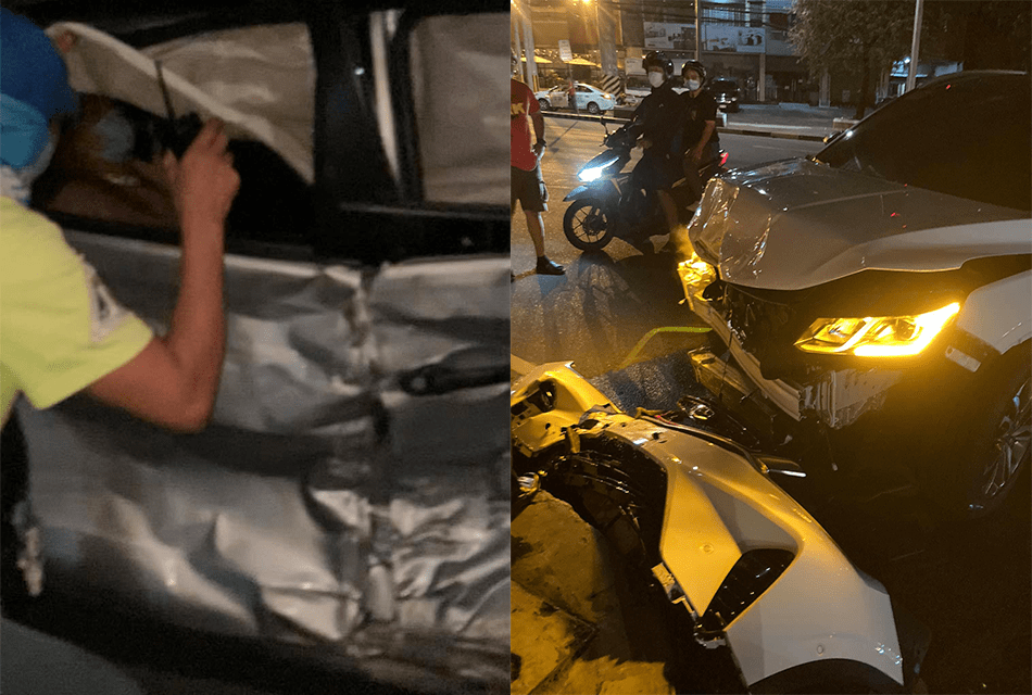 According to one of the witnesses, the Geely Coolray crashed into a Toyota Vios after the former allegedly tried to beat the red light at the intersection of Quezon and West Avenues.