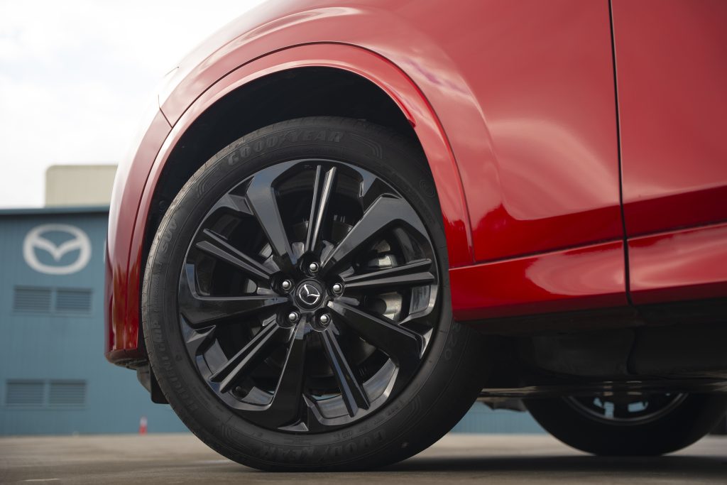 Outside, both variants have 20-inch aluminum alloy wheels with 235/50R20 tires, a panoramic sunroof, and a hands-free power tailgate with height memory adjustment. The 3.3 AWD HEV Turbo showcases the signature Mazda design with its machine-cut alloy wheels, bar-type grille, bright chrome on the front fenders, side window moulding, and exhaust finishers. Meanwhile, the 3.3 AWD HEV Turbo-D Sport has black metallic alloy wheels, dark honeycomb grille, dark side window moulding, dark exhaust garnish, and black side view mirrors.