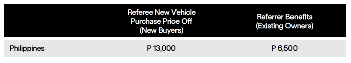 - Orders using referral link will enjoy an exclusive P 13,000 off their purchase price.
