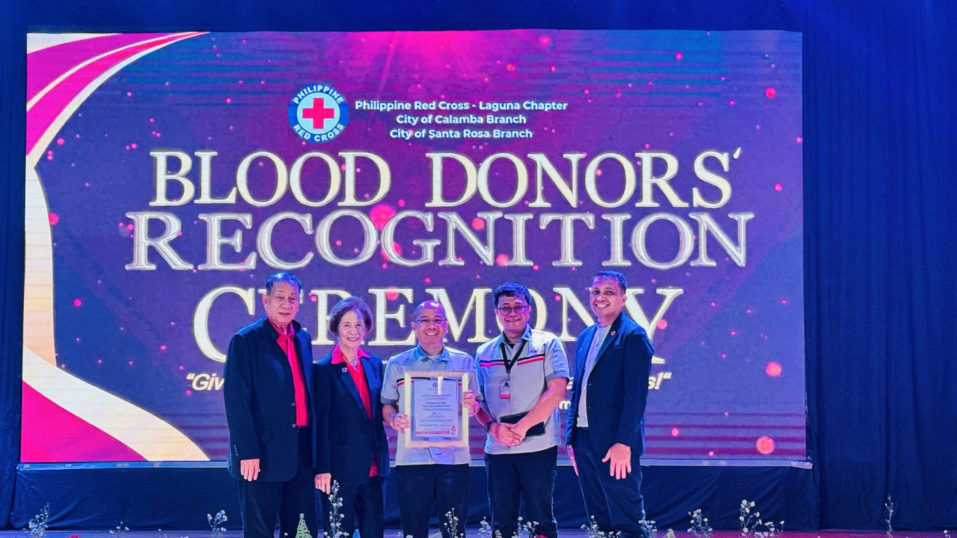 With 207 bags contributed in 2024 alone, equivalent to 93,150cc of blood, the Laguna Chapter of Red Cross also presented a platinum recognition to the company. The award was conferred during the Philippine Red Cross Blood Donation Recognition and Awarding Ceremony held at the Santa Rosa City Auditorium.