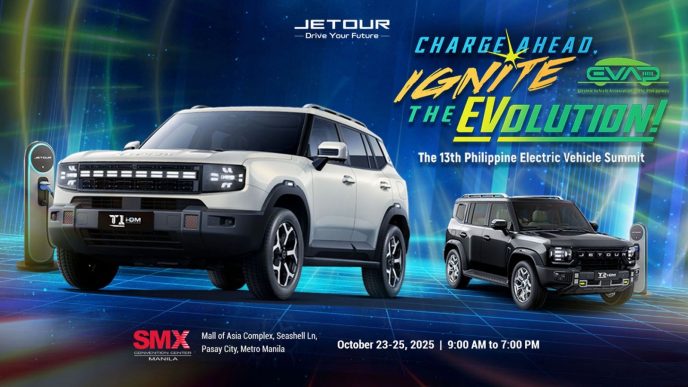 Following the successful launch of the Jetour T1 Lightning i-DM (PHEV) at Cove Manila on October 21, Jetour Auto Philippines Inc. (JAPI) continues to build excitement as it brings its New Energy lineup to the 13th Philippine Electric Vehicle Summit (PEVS). This special New Energy edition of the Jetour On The Move Roadshow Tour runs from October 23 to 25 at the SMX Convention Center in Pasay City.