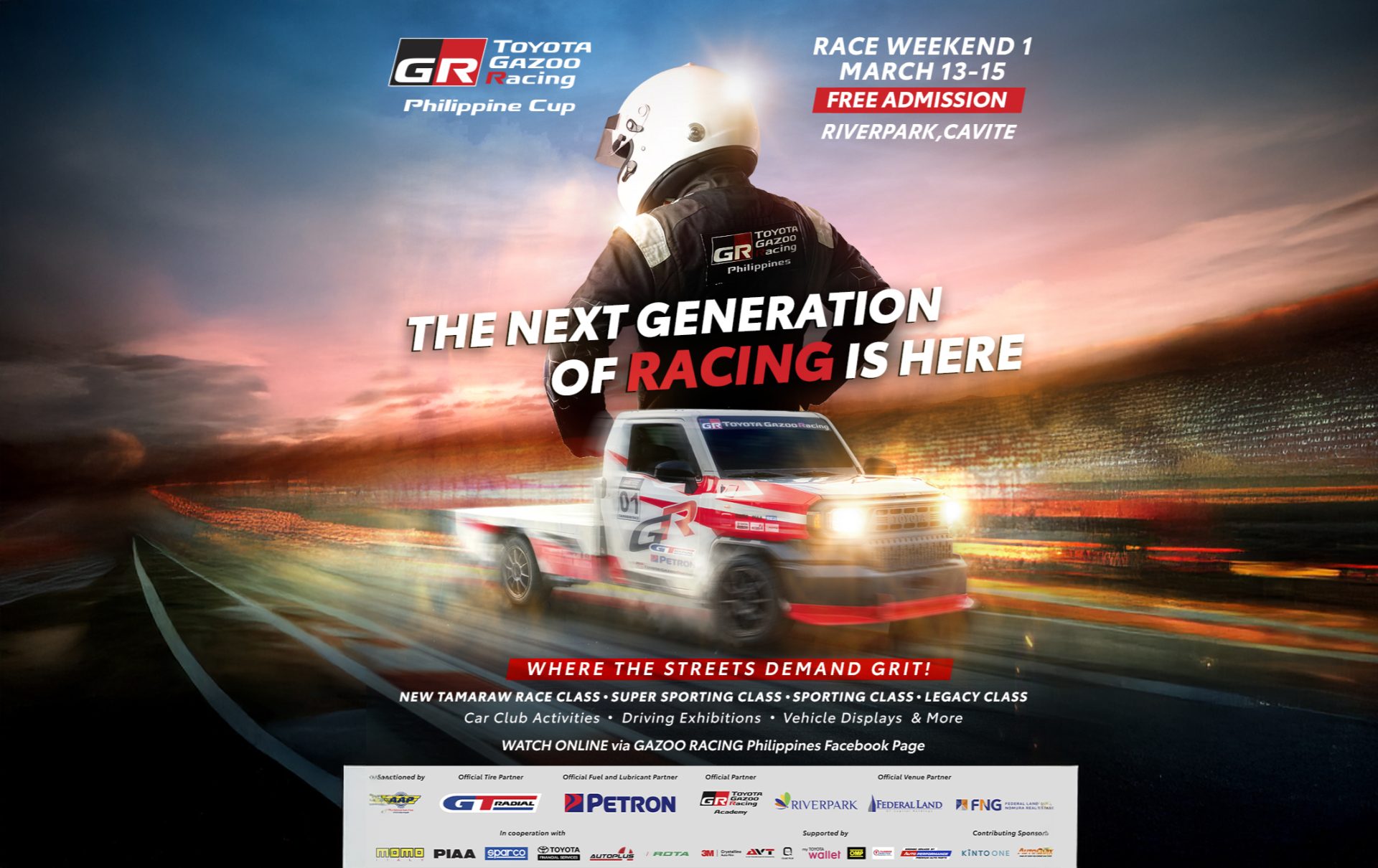 Race Weekend 1 of the 2026 TGR Philippine Cup will be broadcast live on the TOYOTA GAZOO Racing Philippines Facebook and YouTube pages. The live stream will start at 9:00AM.