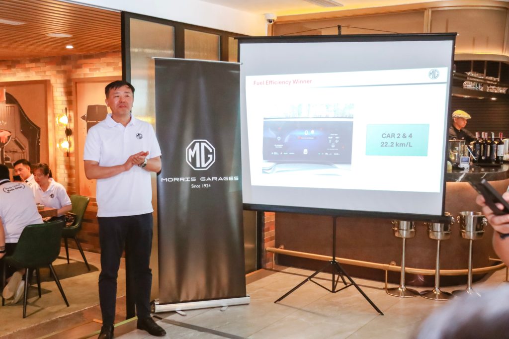 The challenge produced impressive results, with two groups surpassing expectations by achieving 22.2 km/L. The car that arrived first was driven by China Bank Savings and Sterling Bank, composed of Mr. Francis Mendoza, Mr. Paulo Condes, Ms. Marivic Dela Fuente, and Ms. Eliz Solomon. The second group—consisting of Security Bank’s Mr. Earl Moulic and Ms. Lovely Esguerra, as well as Maybank’s Mr. Donnie Ray San Diego and Mr. Noel Austria—arrived just a few minutes later, further demonstrating how to maximize the fuel efficiency of the MG HS Hybrid+ under real-world conditions.