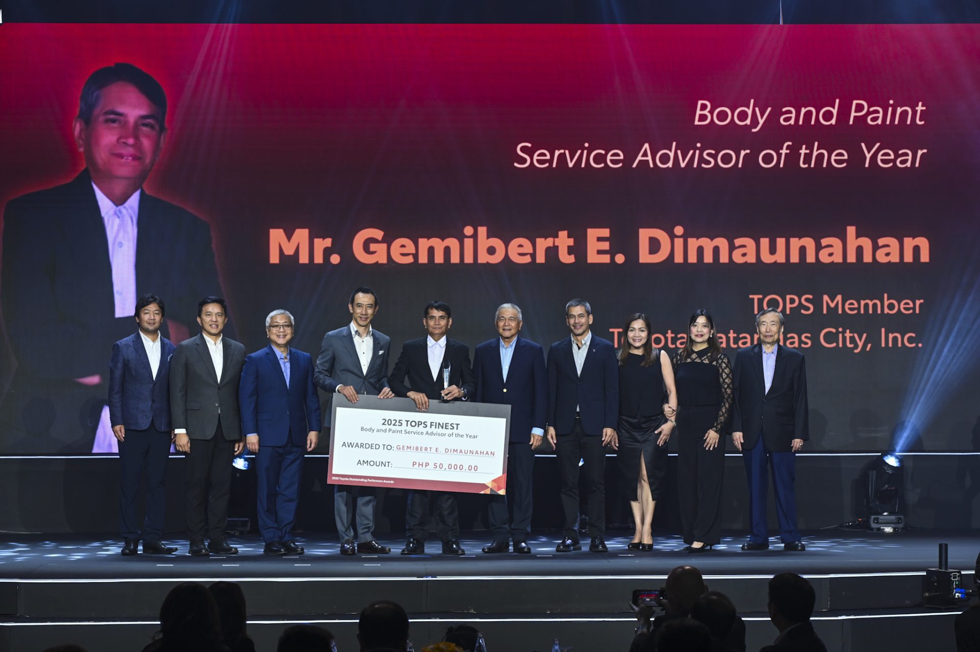 Winning the TOPS Finest Body and Paint Service Advisor award is a great honor for me and I would like to take this opportunity to thank our president Sir Francis Laurel, Executive Vice Pres. Sir Jose Martin Laurel, General Manager Mam Brenda Raule and our Service Manager Ma’am Riza Mendoza Rabago.