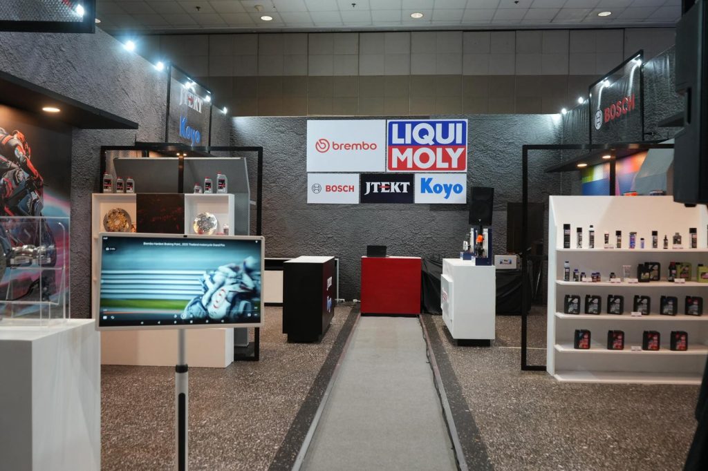 Alongside Brembo motorcycle braking components, the BSB Junrose booth also featured Liqui Moly motor oils, additives, and motorcycle care products, as well as JTEKT bearings, Bosch horns, and spark plugs.