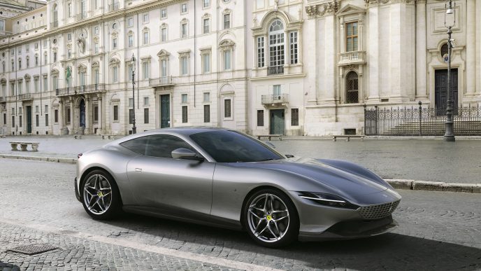 The new Ferrari Roma harkens back to an era when romance was uninterrupted with a ringing cell phone, where people listened to smooth jazz on the radio, and where people watched Audrey Hepburn on TV. “By all means, Rome.”