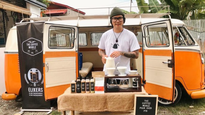 Anzano aims to create a coffee culture through The Coffee Mobile and inspire a growing number of coffee drinkers. Wheeled and always mobile, his movable shop can freely stroll across different neighborhoods in the city. His coffee ventures began with the TCM Cart, the first mobile coffee bar. It was followed by the TCM Moto Pop up coffee bar, and the third and largest, a retrofitted Volkswagen Kombi that travels to Lapu-Lapu City every Saturday for pop up sessions.