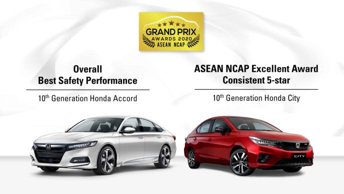 Honda Accord and Honda City received four distinguished safety-related awards at the ASEAN NCAP (ASEAN New Car Assessment Program) Grand Prix Awards 2020. The Honda Accord won three (3) awards from the “Best Safety Performance” while The Honda City received the “ASEAN NCAP Excellent Award – Consistent 5 Star”. This achievement emphasizes Honda’s strong commitment to safety and its vision to realize a collision-free mobile society.