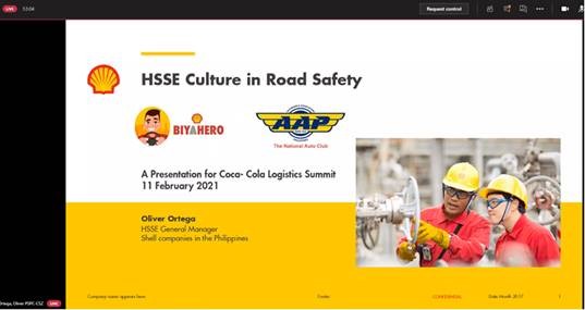 Intending to strengthen safety standards in the organization and with its partners, Pilipinas Shell Petroleum Corporation shared its safety culture and BiyaHero (Road Safety) program at the recent virtual Logistics Summit of Coca-Cola Beverages Philippines, Inc. (CCBPI), the bottling arm of Coca-Cola in the country, last Feb 11, 2021.