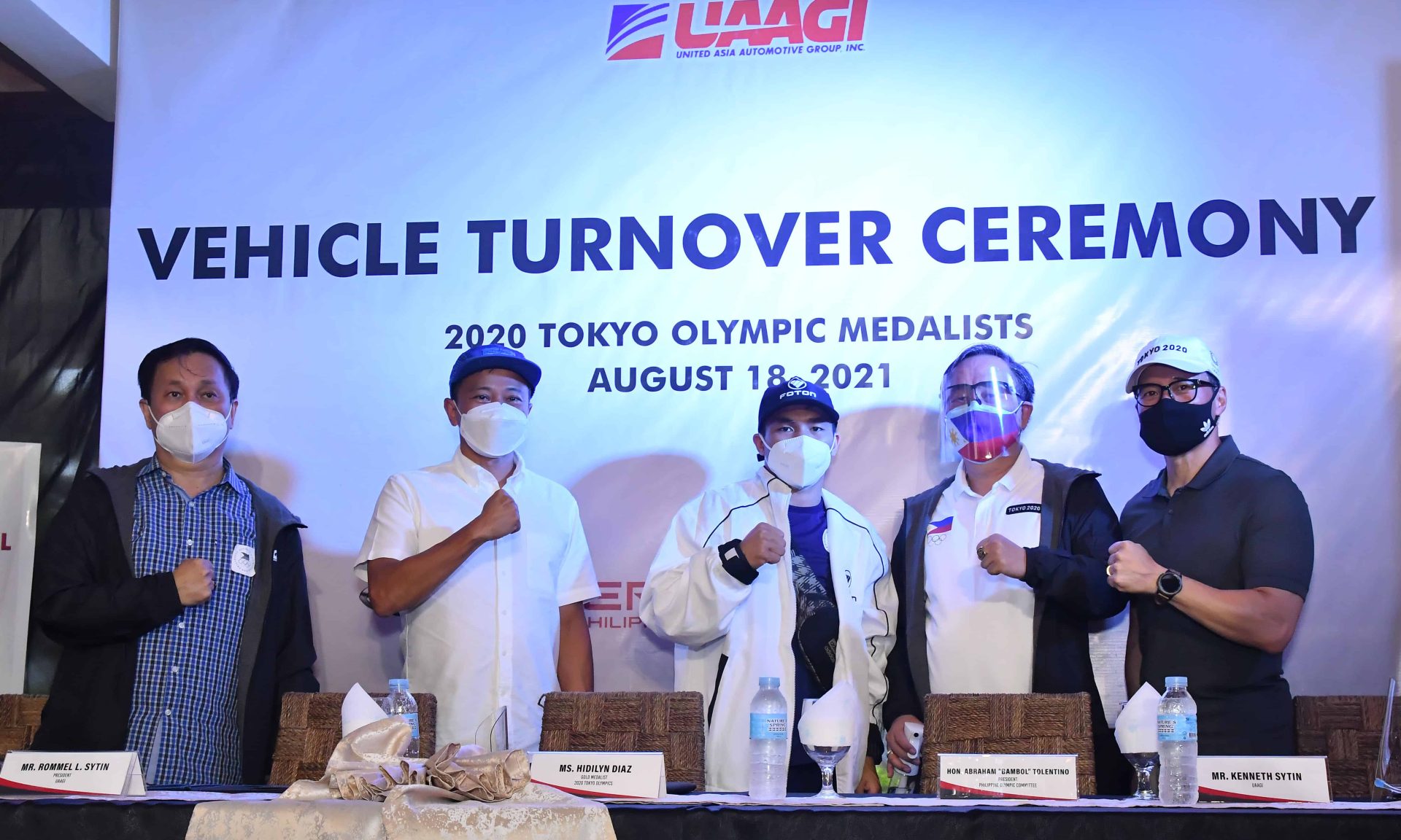 Foton hands over brand new vehicles to Olympic medalists Diaz and Paalam