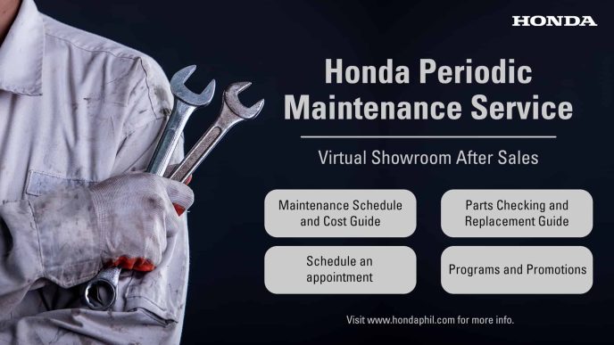 Keep your Honda vehicles in excellent shape through this PMS guide. Have a really good estimate of how much the cost will be by logging in your car model at Honda’s Virtual Showroom After-Sales.