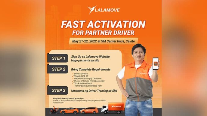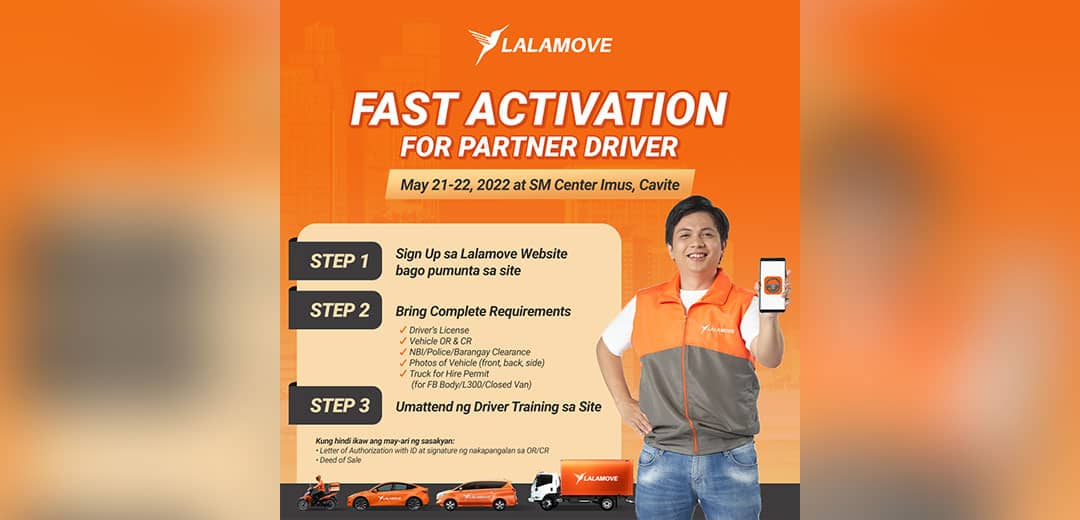 Lalamove Philippines, in partnership with the Local Government Unit of Imus, is launching its Fast Activation Site for delivery driver applicants this weekend, May 21-22, 2022 at the SM Imus Cavite, from 10:00 AM to 5:00 PM. The site welcomes partner drivers who want to join the trusted delivery platforms fleets.