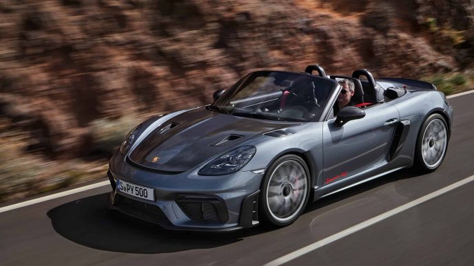 Thirty years after Porsche presented the Boxster concept car, the brand is launching the most powerful version yet of the popular mid-engine roadster. The new Porsche 718 Spyder RS gets the naturally aspirated six-cylinder boxer engine of the Porsche 911 GT3 — the first time the power plant is used in an open-top, mid-engine sports car.