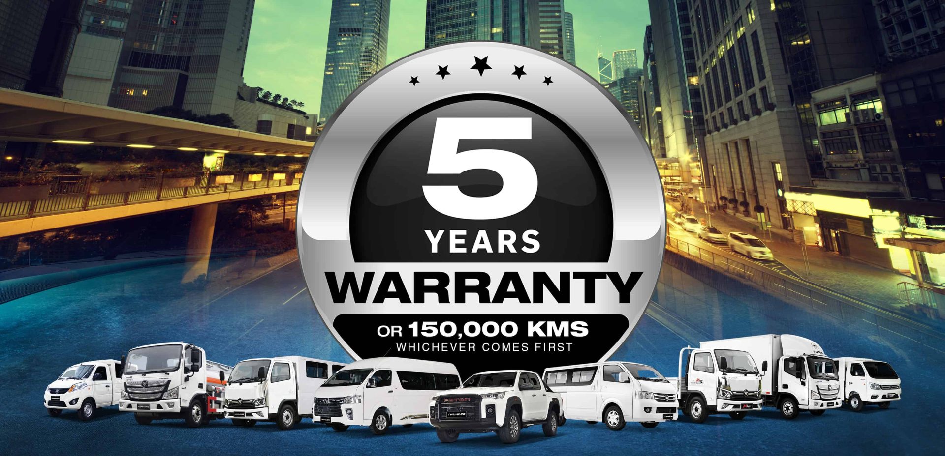 Effective last June 1, 2023, Foton is offering an extended warranty across its passenger and commercial vehicle lineup from the previous 3 years/100,000 kilometers to 5 years/150,000 kilometers (whichever comes first).