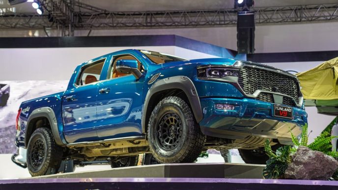 Inside their highly spacious cabins, the Tunland V7 and V9 feature luxurious orange or black-and-brown leather interiors, power-adjustable seats, a leather-wrapped multi-functional steering wheel, full LCD instrumentation, and a gigantic 14.6-inch multimedia touchscreen infotainment system with Carbit and Bluetooth wireless and USB connectivity, among many more luxury, comfort, and convenience features.