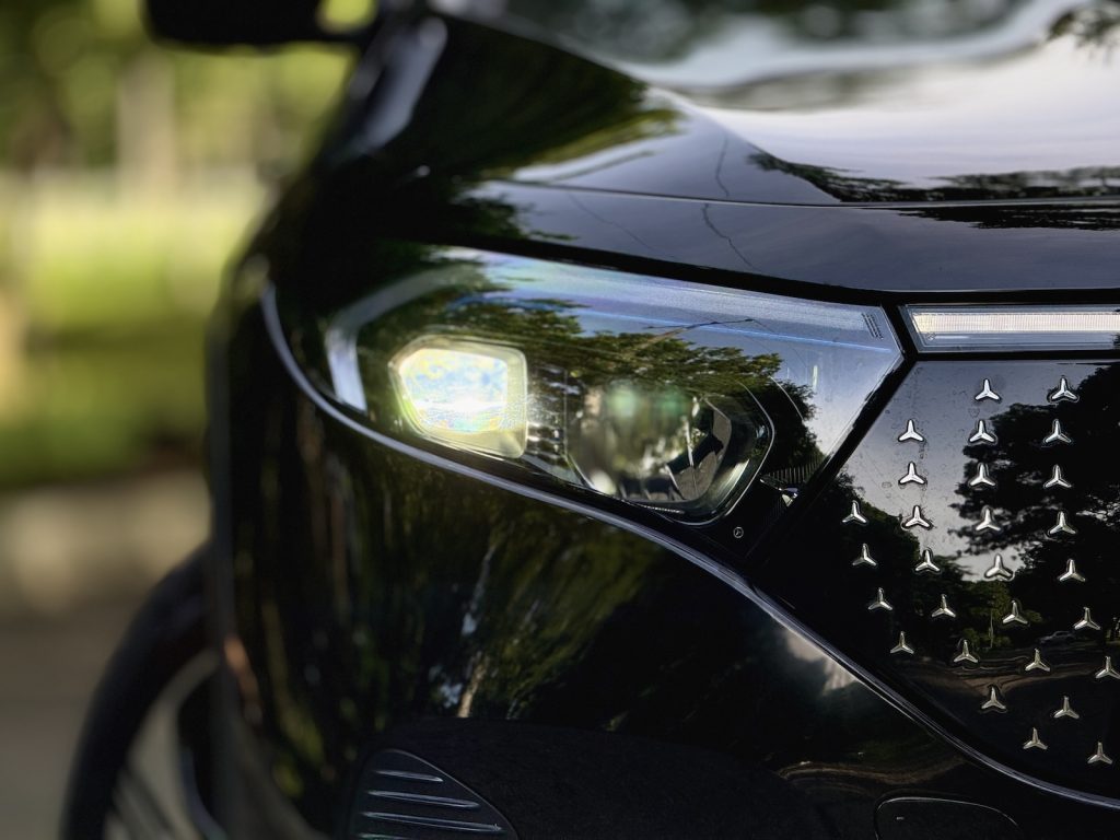 I absolutely adore the upright roofline and low body, giving the car its signature utility-focused stance – though be careful with ramps as clearance from the ground isn’t as high as a G-Class. Roof rails in an aluminum look hint at outdoor versatility (yes, they’re usable), also adding a dash of rugged style. At the rear, another light bar stretches across the tailgate, emphasizing width and tying it neatly into the EQ family’s design language.