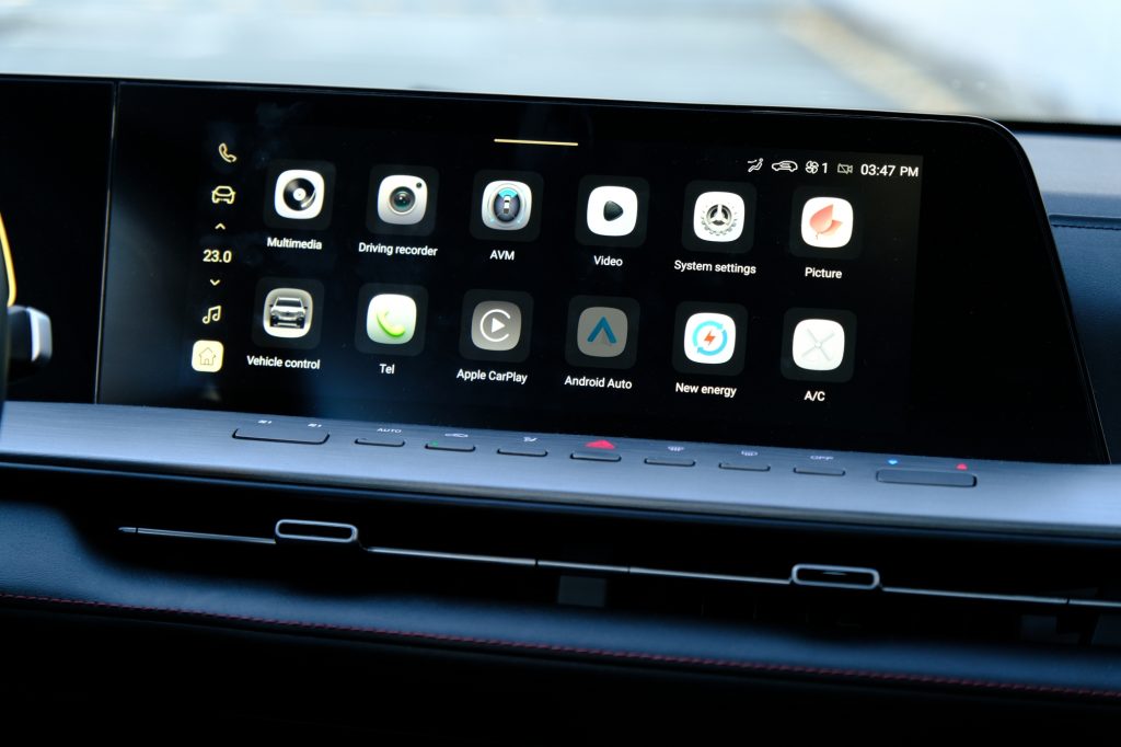 As you move to the front of the cabin, you’ll be greeted by hit after hit of quirks from the Hunter. It has a significant learning curve that even an experienced, multi-car owner will find familiarity tricky. First off, there’s no ignition button. Just press the brake pedal and if you have the key, it will automatically turn on. The hassle comes when you need to turn it off. You’ll have to do a swipe on the touchscreen to see the menu that has the turn off option. If you have Apple CarPlay or Android Auto activated, you’ll have to get on the Home Screen first before you can swipe the menu with the off function. Why didn’t they just allow that menu to be accessed while using AC/AA?