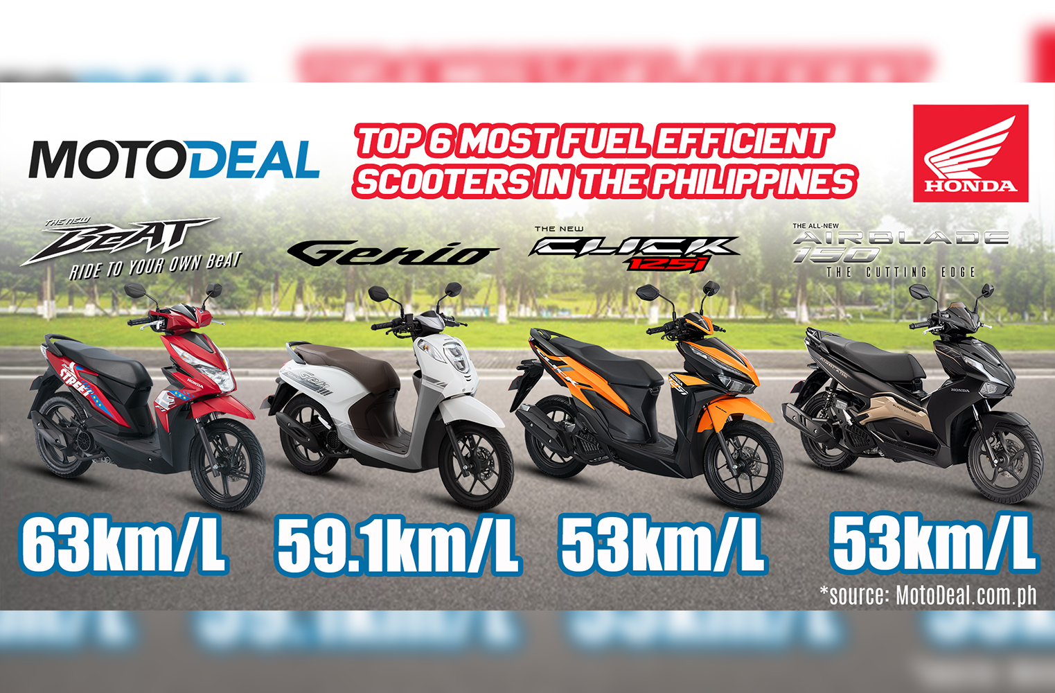 Meanwhile, MotoDeal also recognized four Honda motorcycle models as part of its six most fuel-efficient scooters in the country.