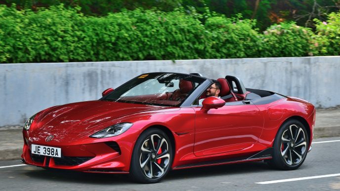 For the time being, MG Philippines is selling only its top-spec 77-kWh lithium-ion battery dual-motor AWD variant with full options that include a very comprehensive safety suite, Bose® 8-speaker audio system, ambient lighting, three-mode KERS (Regenerative Braking) with the powerful fully vented brake discs that feature Brembo 4-pot calipers in the front, four drive modes, driver-centric 3-screen cockpit (10.25-inch instrument display flanked by two 7-inch auxiliary information/control screens) powered by Qualcomm’s Snapdragon 8155 chip combined with the Unreal Engine 4.0 graphic engine, a fourth screen next to the drive controls manages climate control and other energy features, the awesome powered scissor doors that can be angle adjusted from 30-degrees to 76-degrees (the cool scissor doors have sensors to protect itself and others when functioning so you will have to get familiar with its behavior), sleek rear ducktail, full-LED signature lighting that include the rear Union Jack turn signals, 360-degree cameras, excellent build quality and refinement, detail-rich, full smartphone connectivity, very insulated powered retractable canvas roof with glass window and heat element for defrosting that can open and close within 15 seconds while moving up to 50 km/h, multiple USB ports, tasteful faux-leather and Alcantara sport seats, adjustable drink holders, and more. There are no clear plans about importing the 64-kWh rear-drive only models at the time of this review.